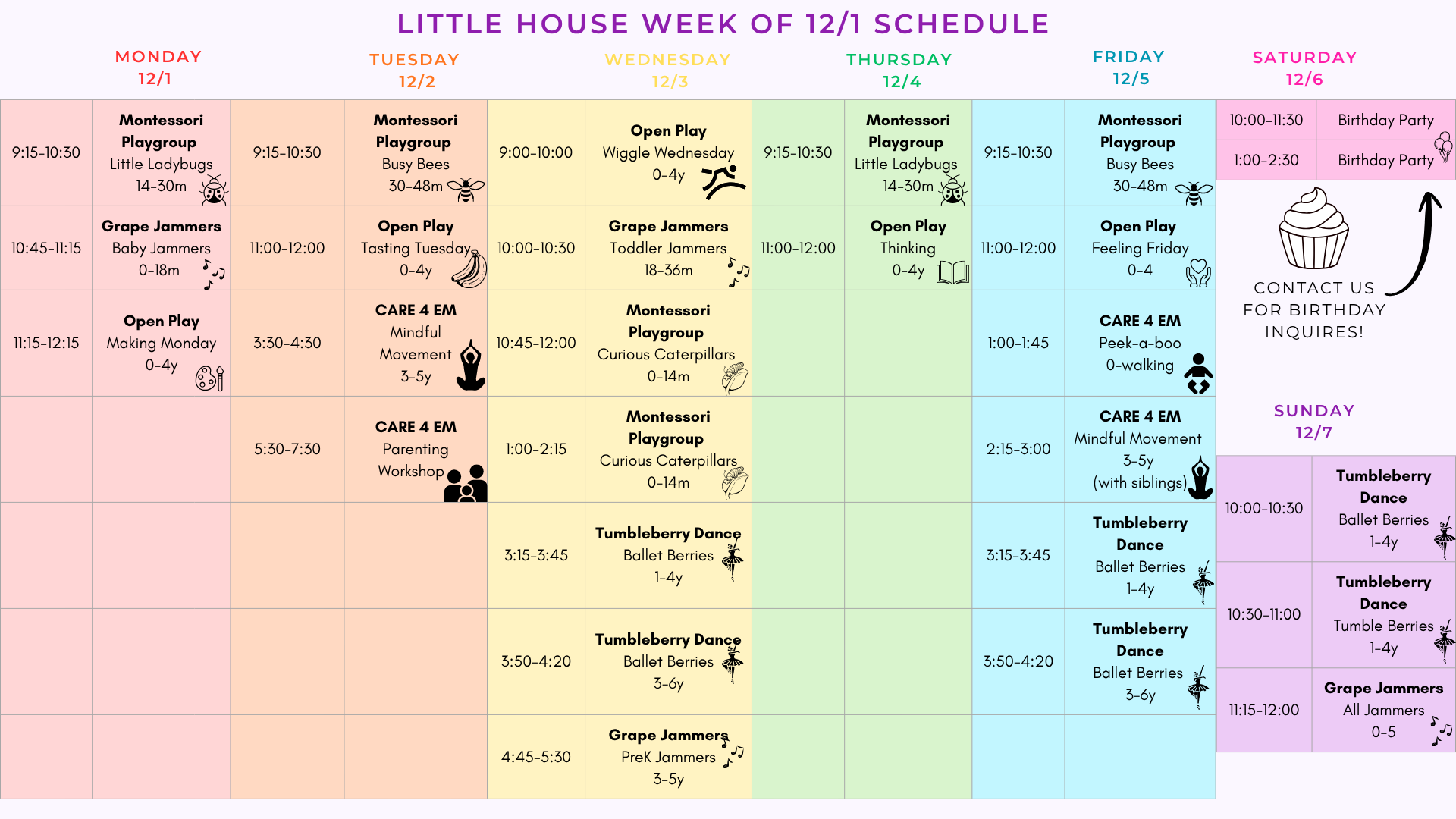 our space is expertly curated to provide you and your child with an environment that caters to their developmental stage, while supporting you as their caregiver. Whether you attend weekly playgroup, drop in for open play with a friend, sign up for a music class or kinder prep group, there are so many ways for little house to hold you and your child on their journey through childhood.
